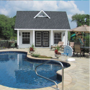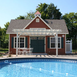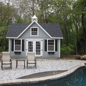 Whether you need more storage for outdoor items or want to create the ideal location for entertaining on hot summer days, our Elite pool house offers the perfect setting. Available in three styles – cape, cottage, and villa – this pool shed exudes classic New England charm. Plus, because it’s completely customizable to your preferences, it’s sure to complement your home and its exterior areas. Simply select your favorite color combinations, doors and windows, layout, and more to create a functional, beautiful pool house.