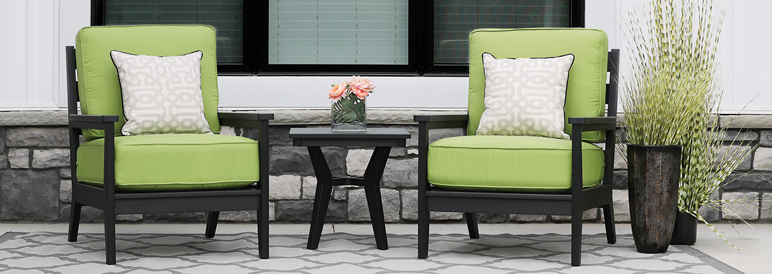 You furnish the inside of your home with high quality furniture – Why do anything less outside? Make your decks and patios a stress relieving extension of your home for family and friends. Luxurious, handcrafted upholstery from fully recyclable vibrant poly lumber combined with thick comfortable cushions.