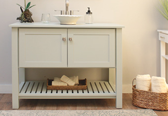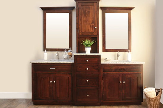 Our vanity cabinets feature solid wood drawer fronts, drawers, drawer boxes, panel ends, and doors.
