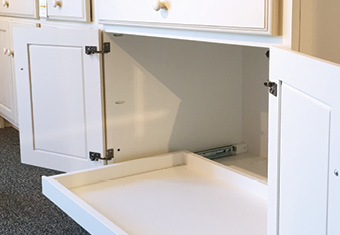 Our custom cabinet designs are perfect for vanities, mudrooms, entryway units, laundry rooms and more! You can customize your vanity with different size cabinet layouts, sizes, mirror and counter tops – or choose from one of our stand alone vanity units. With just about any layout, let us help you create cabinets that are beautiful and that perfectly fit your needs and your home.